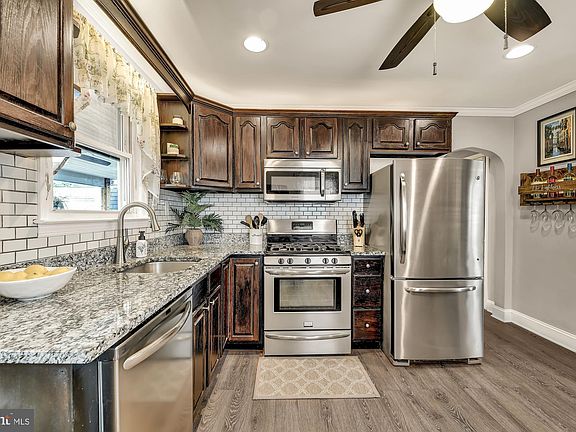 Gorgeously Renovated Cape Cod with a Beautiful Backyard and a Covered Deck that is Perfect for Entertaining! A Spacious and Bright Living Room with new flooring & Crown Molding welcomes you and your Guests! The Living Room opens up to an Updated Eat-In Kitchen with Granite Counter Tops, Designer Tile Back Splash, Crown Molding, & Stainless Steel Appliances with a Gas Range! A Spacious Owner's Bedroom with Crown Molding, Updated Hall Bathroom with Designer Tile, and 2nd Bedroom with Crown Molding completes the Main Level. Upstairs you will find two additional spacious bedrooms with plenty of closet and storage space! The Fully Finished Spacious basement is ideal for get-togethers with its Brand New Carpet, Crown Molding, a Granite Mini-Bar, and an Updated Full Bathroom. The large fenced-in backyard is truly an Outdoor Oasis! Enjoy Entertaining Your Guests on Your Huge Covered Deck with Ceiling fans to keep you cool during the summer! There is also a Trex Deck in the back and a patio area for additional entertaining! This home offers plenty of off-street parking, 2 sheds with electric for extra storage space, and the HV/AC, Hot Water Heater, and Washer and Dryer are only 4 years old! Conveniently located within the County and close to all major routes! Freshly Painted Throughout! This is a Must See!
