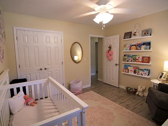 Move in ready 3 bedroom 2 bath home. This home offer hardwood laminate flooring throughout, kitchen with tile countertops, stainless steel appliances, breakfast area, spacious laundry room, separate dining room, spacious open living room with fireplace, All bedrooms are spacious, Rocking chair style front porch, fenced in backyard on a corner lot with a large deck for entertaining guest. Stop by and take a look at this super cute home!