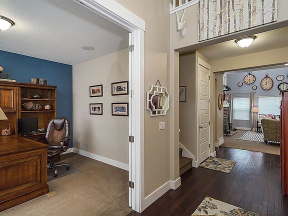 Designed with Distinction! Quality construction & previous model home by Henry Walker featuring lots of upgrades: desirable Craftsman style, great room with floor-to-ceiling windows, spacious kitchen with white Shaker-style cabinets / SS appliances /granite counters (in mstr suite too!) / subway tile backsplash / rich hardwood flooring, den-formal living room with French doors + window-bench seating, master retreat on main level with tray ceiling / dual sinks / full laundry in huge walk-in closet. Upstairs has 3 bedrooms + 2 full baths + loft/sitting area and 2nd full laundry. Basement features theater room with in-wall speakers, 2nd kitchen with Hickory cabinets, 2 bdrms + full bath. Designer paint colors. Outside features large composite deck with built-in hot tub, full landscaping and beautiful view of the mountains. Finished 3-car garage.