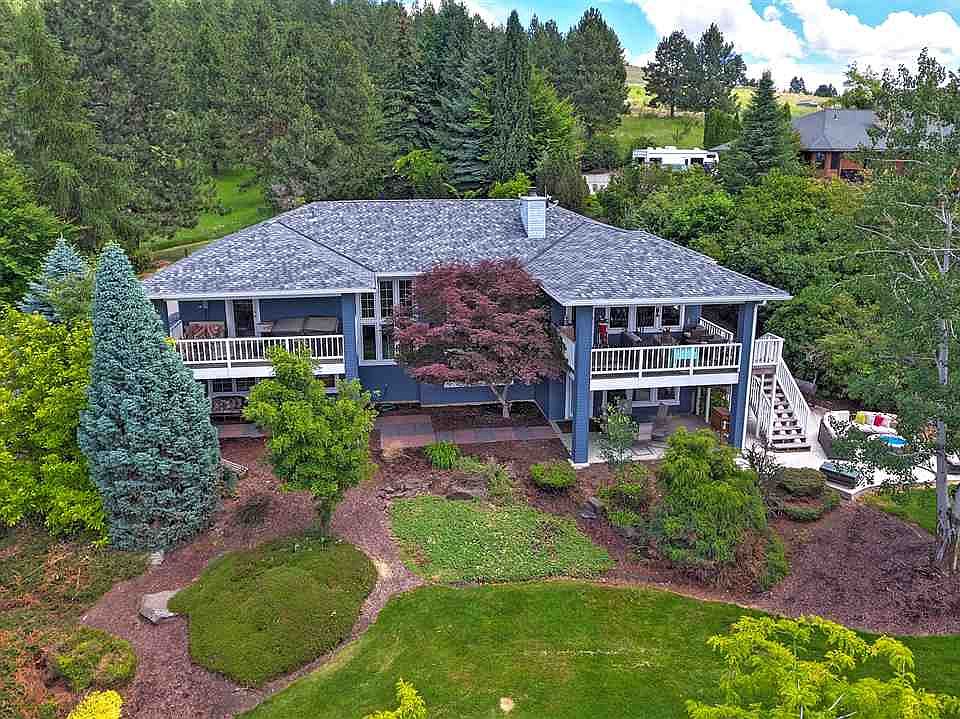 Amazing 180 degree Westerly views from this custom raised daylight rancher. Full finished walkout basement. Gourmet kitchen w/gas cooktop, granite counter & large island eating bar, open to great room & covered deck w/stairs down to patio & propane fire pit. Main floor master w/soaking tub, luxury shower, walk in closet & private West facing deck w/hot tub & views for days! HW floors, 2 sided gas fireplace, central vac, formal living & dining rooms, main floor util. Landscaped Lot- Privacy from neighbors.