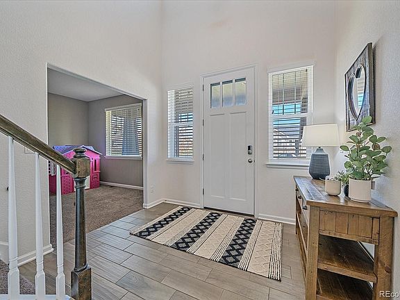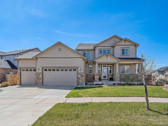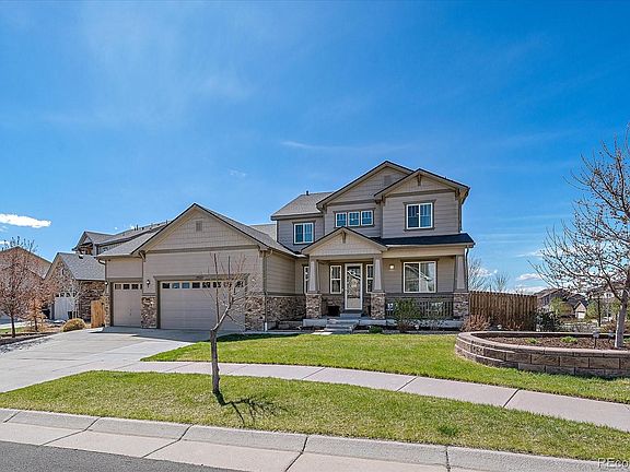 Do not miss this Wheatlands stunner! This east facing 5 bedroom, 4.5 bathroom gem has it all! Home is light and bright, with stunning built ins, high end appliances, luxurious fixtures and Rocky Mountain views galore. This home is uniquely designed with dual primary suites—one conveniently located on the main level and another upstairs—both offering unparalleled luxury. The interior also features gorgeous flooring and a full-sized, finished basement that provides ample space for both recreation and storage. The exterior features an oversized deck with impeccable views and low maintenance landscaping. The Wheatlands neighborhood enjoys numerous community amenities, including pools and fitness, while being within close proximity to the Aurora Reservoir. All of this plus an unbeatable location central to schools, shopping and recreation.