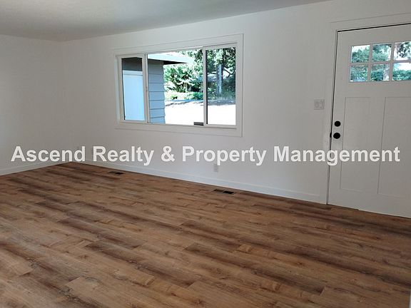 Be the first to live in this stunningly updated 4 bedroom one level home. Gorgeous brand new wood floors, marble counters in kitchens and baths. Extra long galley kitchen features brand new stainless appliances including electric range, refrigerator, dishwasher and microwave. Dining nook next to kitchen gets great natural afternoon sunlight. At the other end of the kitchen is a large dining room with ceiling fan. This dining room has a slider door which opens to a covered back patio. Leading off the dining room is the utility room with washer/dryer hookups. Beyond the utility room is the large 4th bedroom (with a door to the exterior). On the other side of the home you'll find 3 bedrooms and 2 bathrooms. Primary bed includes double closets and a built in dressing table/vanity area with mirror. Brand new interior & exterior paint. Forced air heat. NO smoking/vaping and NO pets. Parking for 3 vehicles maximum (must be in front of garage). 2 fireplaces are decorative only-not to be used for burning wood. Located on bus line 52 and next to shopping & restaurants. ** Available NOW NO Smoking/Vaping NO Pets Kinnaman/Mountain View/Aloha 4 bed/2 bath 1670 sq ft/approx Resident responsible for all utilities 12 month lease $40 application fee per adult $2510+ security/cleaning deposit Proof of renters liability insurance required