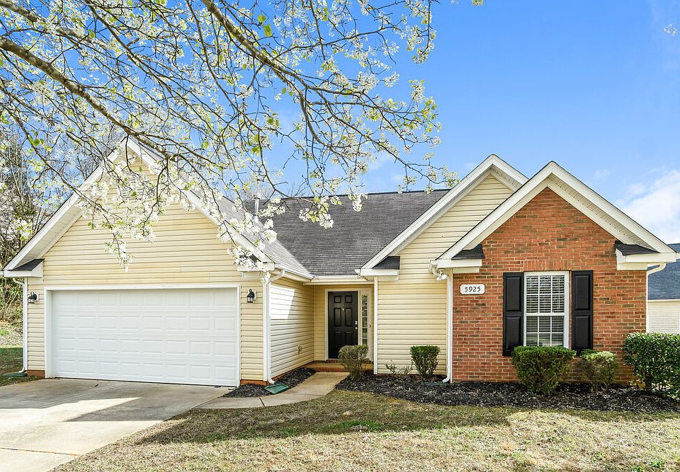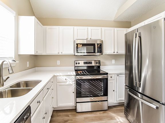 Enjoy living in this beautifully updated three-bedroom, two-bathroom rental home in Charlotte. Located near parks and retail, it has a patio in the back and an attached two-car garage. The layout of this 1,256-square-foot home includes a living room with a vaulted ceiling and a gas fireplace. A chandelier creates a warm atmosphere in the adjoining dining room. Steps away, the kitchen features stainless-steel appliances, abundant white countertops and cabinets, and a pantry for extra storage. Get a restful night's sleep in the main bedroom, which features a walk-in closet and an eye-catching tray ceiling with a lighted fan. The suite's private bathroom boasts a double-sink vanity and a no-step shower. Utilities must be transferred into the resident's name.