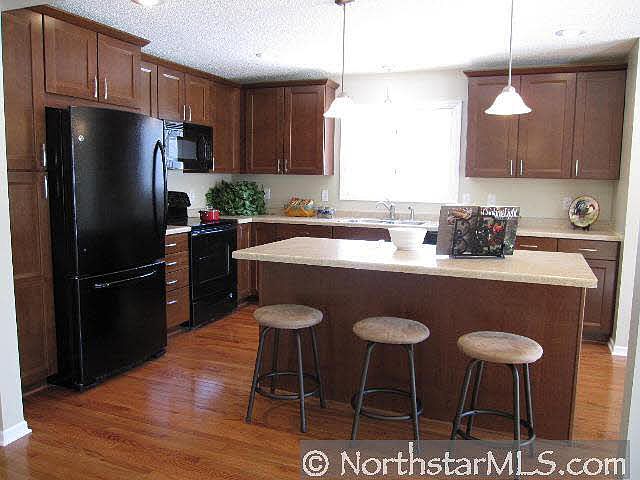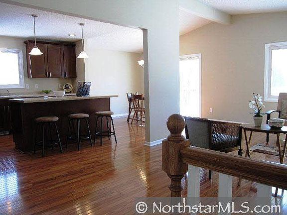 Completely remodeled. Kitchen features cherry cabinets, center island, and new appliances. Hardwood floors in kitchen, dining and living room. Bright open floor plan with vaulted ceilings. Large rooms. New roof, carpet, and freshly painted interior.