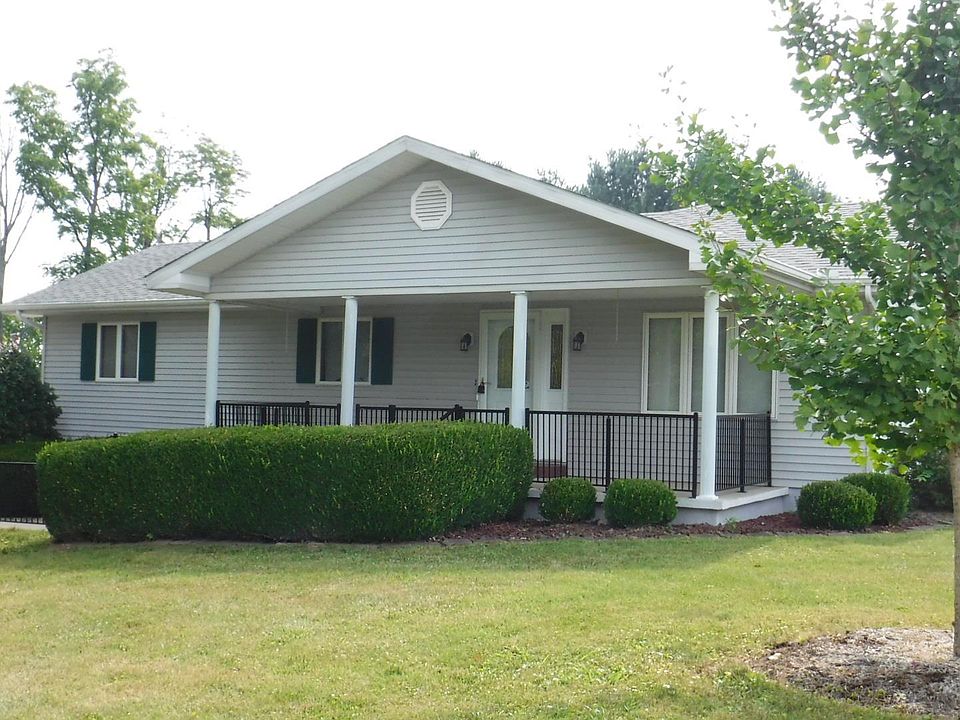 2 bedroom, 2 bath, Den could easily be 3rd bedroom, 1580 sq. ft. home on 3.31 acres. This property has lots of updates from new subflooring to a new roof on home and garage. Hardwood and tile flooring, skylights, gas log fireplace in living room, all appliances stay are just a few amenities in this home. Outside there is a covered front porch and out back is a newly landscaped back area with a stamped concrete patio. The oversized 2 car detached garage is finished on the inside and has a gas wall mounted heater. The yard is open out front with some shade trees out back. Right on SR 46 makes it convenient access to get out and on the road.