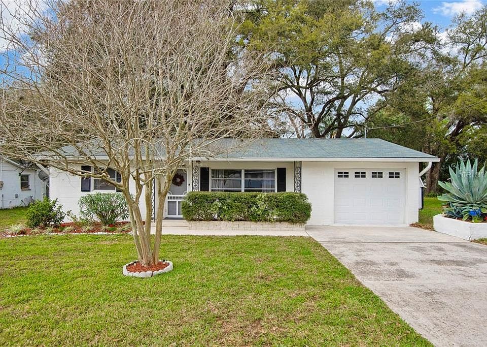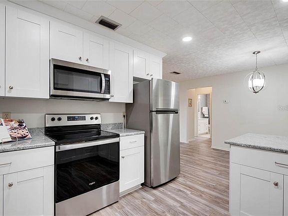 Welcome home to an absolute charmer! Check out this completely remodeled 2 Bedroom, 2.5 bath with Oversized 1 Car Garage (13 x 22) and large screened lanai(21 x 10). New in 2020: Southern Oak Laminate Flooring with 24 hr. spill guard throughout entire home, Interior Paint, Light Fixtures, New Kitchen(soft close doors/drawers) with Granite counter tops, Whirlpool stainless appliance package, Master Bath has new designer series Vanity with marble top, New mirror and toilet. Roof New in 2016, Stackable Washer & Dryer 2016, Seamless Gutters with leaf protection 2019, Garage Door 2015. Extremely well maintained home in highly sought after area on quiet street. Home has Septic and Well system offering low Utility bills and NO HOA. Enjoy relaxing on the rear patio while enjoying the view of a tropical oasis. Easy access to shopping, restaurant's, movie theater, library, a skate park, dog park, bowling alley and medical facilities. This move in ready home is waiting for the next homeowner!