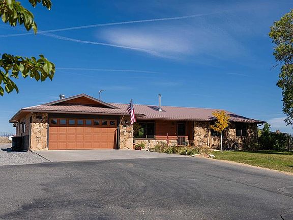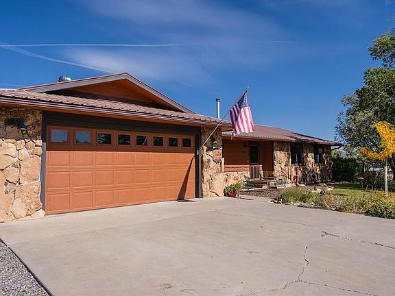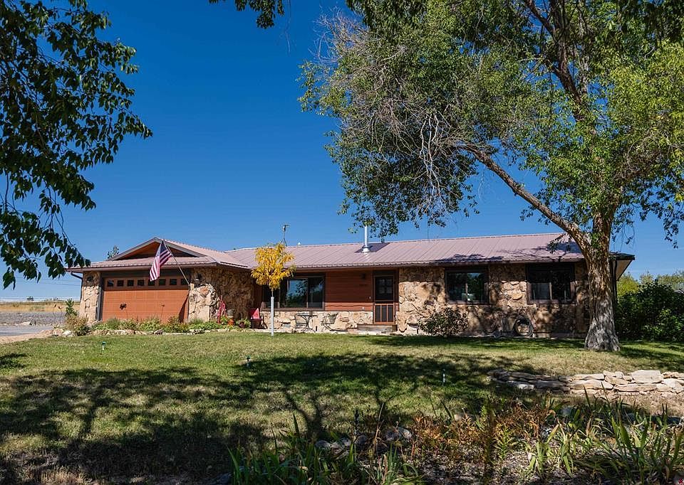 Charming and beautifully remodeled ranch home on a 1.39 acre property located on stunning and desirable Spring Creek Road in Montrose. This property is introduced by its own pond with a little dock, beautifully maintained landscape in a lovely country setting just a 10 minute drive from downtown Montrose. Inside, you'll be greeted with an attractive and tasteful blend of soft, cool and warm tones, warm hard wood accents, and a functional layout. The entry space flows nicely into the dining, spacious living, a gorgeous kitchen, which features a large island with counter-height bar stool seating, ample cabinetry and counter space, and a view into the lush back yard. Just down the hall from the kitchen is a convenient bath, and additional living room/flex space with access to the pergola covered patio space and private back yard, including a hot tub, and surrounded by a handsome corrugated rusted steel fence. Just behind this is the large detached shed/barn with covered storage/parking spaces for toys and other items. Back inside the home, down the opposite hall, you will find the laundry, a full hall bath, two well-appointed guest bedrooms, and the generous master suite with ensuite 3/4 bath. This home is warm, welcoming, and move-in ready. Lovingly remodeled and immaculately maintained, it is ready for you to call your home sweet home! Attached 2 car garage finishes out a wonderful, unique property in a dreamy setting. Schedule your showing today!!