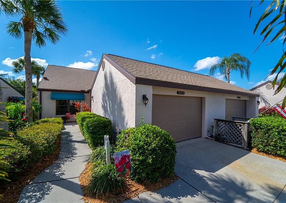 Welcome to your new home in Clubside at Palm Aire, a golf community where social memberships are NOT required, and the HOA dues are low. This two bedroom, two bath home is clean, bright, and move-in ready with an open floor plan and high ceilings. You'll enjoy the sleek updates throughout. The kitchen has granite countertops, stainless steel appliances, built-in eat-in space, and wood cabinets. The master bathroom is fully updated with a lovely coastal vibe -- quartz countertops and updated tile in shower. Enjoy your coffee or evening drink from your optional enclosed or open patio. The community pool, which is in your backyard, is hidden by lovely landscaping-- trip out to the pool from your lanai! Clubside is in a premium location where you can drive to University Town Center in five minutes, Downtown Sarasota in 15 minutes, and the beach in 25 minutes. AC unit is brand new (2019).