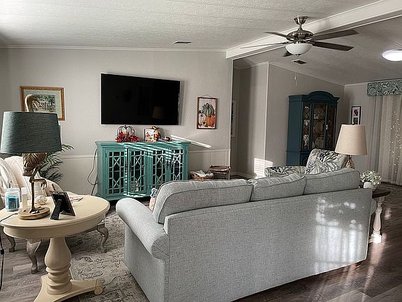 A well maintained, and beautifully renovated home in Camelot Lakes Village in Sarasota. Amenities include 2 pools, saunas, sports courts, fitness center, gated community, clubhouse, auditorium, outdoor kitchen, many activities on going. Home is a split floor plan. 2 bed/2 bath * Both bathrooms completely remodeled. * Waterproof vinyl laminate flooring * Inside laundry * designated office w/ new soft close cabinetry * Large kitchen with new appliances * Outside screened lanai * outdoor shed * Inside heated/cooled lanai * Dining room w/ built in hutches * split driveway will park 3 cars * Ceiling fans * modern lighting * skylights * All draperies stay * Some personal furniture not included, however it will be totally turnkey including dishes etc. * Metal siding newly painted * irrigation system * There is a lot rent (listed) HOA is voluntary and $20 a year. * Lot rent includes water, sewer, trash (+recycling /yard waste) * lawn cutting.
