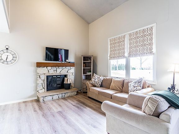 **Open House Sunday February 5th from 2-4** Elegant-Chic-Bright and Updated, just Turn the Key and move right into the "care free living" at Sawmill Woods. This 2 bedroom 1.5 bath unit has been lovely cared for and updated. The open floor plan is highlighted by a vaulted two story great room with stone fireplace. A galley style kitchen with subway tile backsplash is open to the eat in area and great room. Half bath and laundry closet are conveniently located just as you come in from your 1 car attached garage. Two bedrooms up including a 16x13 owner's suite with a walk-in closet and easy access to your full bath with double vanity. A fenced in private patio area is the perfect spot for grilling and chilling on the weekend. Association dues cover: roof, siding, exterior maintenance, clubhouse, tennis and basketball courts, snow removal, mulching, landscaping, and pool!