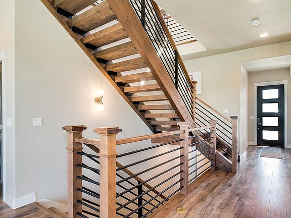 Stunning, almost brand new home on large lot, backing to open space! Located in the Poudre School District (Bethke, Preston, Fossil Ridge) just walking distance to elementary school, this gorgeous custom home features a great open floor plan, wood floors, beautiful white kitchen cabinets, a main floor bedroom, and your very own basketball court. Contemporary style, exposed wooden staircase creates an amazing focal point. Popular neighborhood with clubhouse, exercise facility and pool!