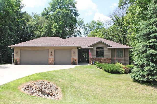 Beautiful 4 BR, 3 Bath Rambler on 1.5 acres (3 lots). Master suite, main flr laundry, hardwood, lower level finished with in-floor heat, 3 car att. heated gar. (34x24) and 3 car detached heated (32x36). Great location - all on blacktop roads. Must see!