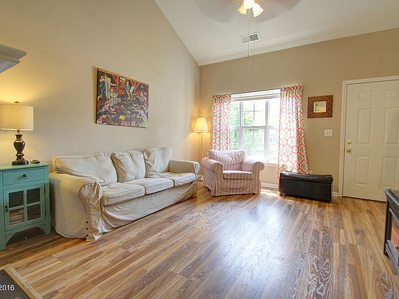 Desirable end unit located on premium perimeter lot with private tree lined view. Superb curb appeal created by 2014 roof, covered front porch, fresh landscaping, brick front accent, & 2013 privacy fenced backyard. Dramatic two story great room boasts 2016 laminate floors, vaulted ceilings, upgraded gas log FP, decorative ledge, & exposed staircase. Highly sought after floor plan with Master BR on main level & true three bedroom configuration (no loft). Two inch blinds in bedrooms. New 2014 HVAC. Spacious eat-in kitchen offers 2019 dishwasher, smooth top stove, overhead microwave vent and granite countertops, breakfast bar, pantry, & sunlit breakfast nook. The second level features two large bedrooms & full bathroom. No neighbor view behind unit. Well maintained community pool & common areas. Minutes from 85, 77, North Lake, UNCC, & more.