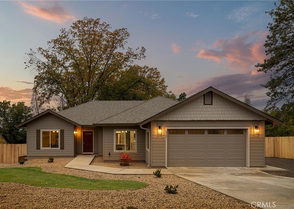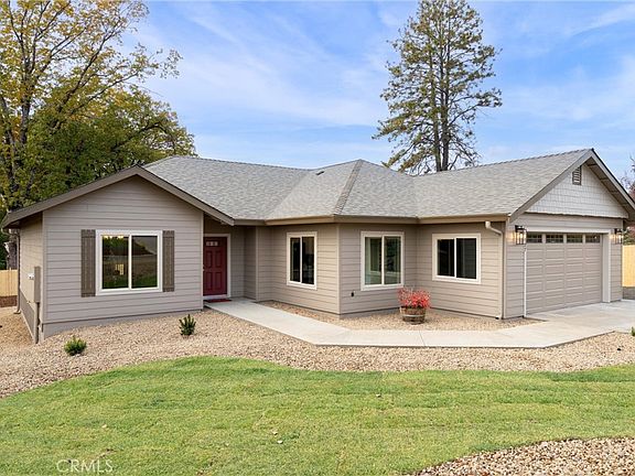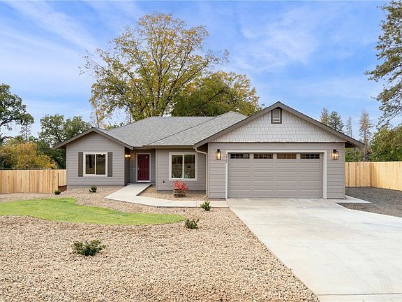 CUSTOM BUILT DREAM HOME! This BRAND NEW 2023 “HARDING BUILT” home offers exceptional amenities in an affordable package, just minutes from Chico AND the heart of Paradise! Built by a revered LOCAL long-time ridge builder, this exceptional new home offers a popular floorplan including 3-Bedrooms, 2-Bathrooms & 1856+/-SqFt of living space on a sizable .28-Acre parcel with top notch upgrades throughout. Some of the many features include; a formal entry and spacious living room with tall coffered ceiling & sliding glass door to the low maintenance raised concrete deck with attractive steel railing, formal dining or den off of the entry and living room, expansive kitchen with solid surface counters, stainless appliances, large walk-in pantry with lots of shelving, dining nook overlooking the front yard & bar seating as well, spacious master suite with large en-suite bathroom, solid surface topped dual sink vanity, beautiful luxurious step-in tiled shower and large walk-in closet, two generous guest bedrooms with large mirrored closets & ceiling fans, a well-appointed hall bathroom with solid surface counter and tub-shower combination, centrally located indoor laundry room, fully insulated two-car garage with epoxy finish floor and gorgeous FULLY landscaped yard with perimeter wood fencing & partial cross-fencing. Other exceptional amenities include; covered front entry porch, elegant vinyl plank flooring throughout with 50-year residential warranty, upgraded cabinetry with soft-close doors & drawers, ceiling fans, tasteful colors throughout, in-wall media hub cabinet with power, Cat-5(internet), RG6(TV Cable) & fiber connection to outside, heat-pump water heater, name-brand equipment & appliances, 240v-Power in the garage perfect for electric car charging or welding or woodworking, completely new septic system RV-Parking and much more. Exceptional homes are hard to find and this one is BRAND-NEW. Additionally, this home is located off Clark Rd centrally located in Paradise, making it a great location with convenient access to Paradise, Chico and Oroville. Recreational opportunities in the area include lakes, hiking, biking, fishing, ATV and dirt-bike riding, canoeing, kayaking and much more! Take a look at this tremendous property and you may decide to call this one HOME!