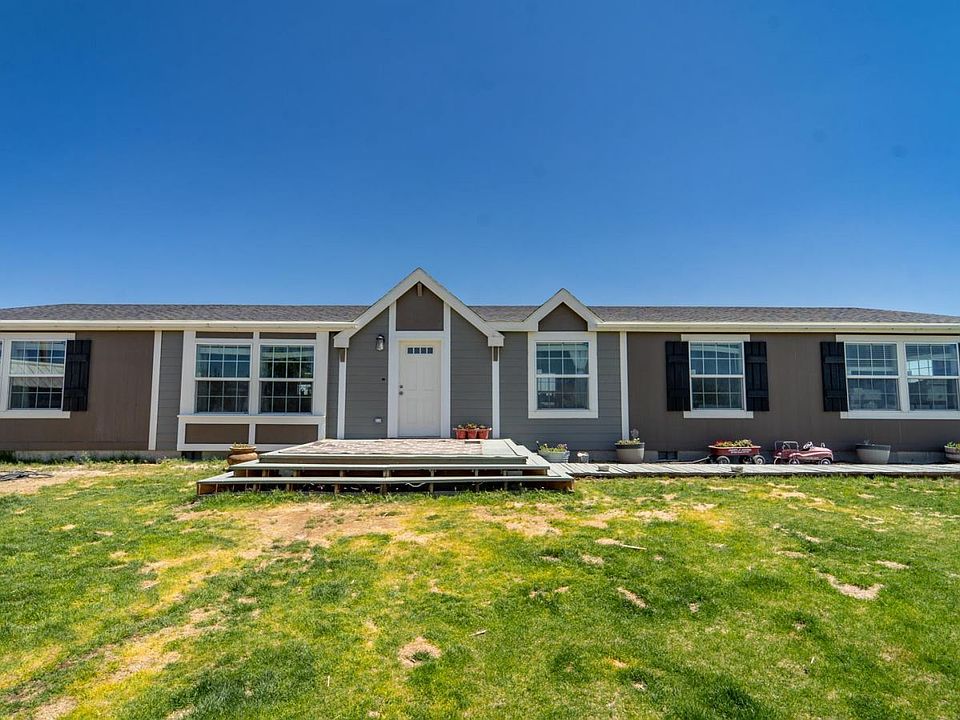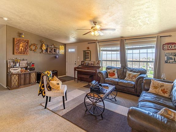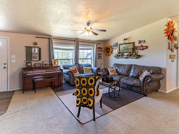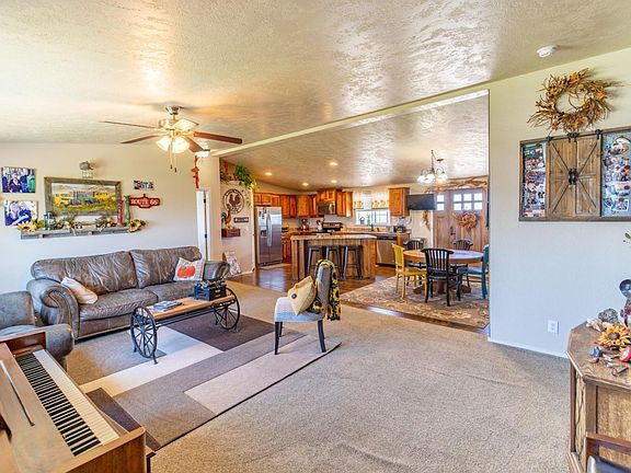 This all electric 2280 sq ft home sits on 4.5 acres overlooking the valley below offering peaceful sunrise and sunsets. Home features granite countertops in kitchen and all bathrooms, an open concept, split floorplan along with an office nook, secondary living space currently used as a classroom and large laundry room with exterior access. Main bathroom features double sinks, soaker bathtub along with separate shower. The kitchen offers stainless steel appliances, a granite countertop island and large pantry. Outside you will find a pond, apple and nectarine trees along with access to countless miles of hiking, mountain biking and off-road activities.