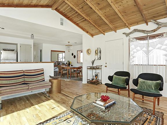 A serene retreat nestled on 5 pristine acres in Joshua Tree. This fully furnished, vintage-inspired 2 bedroom 1 bath getaway combines rustic charm with modern comforts, offering a unique escape amidst the Mojave Desert landscape. Step inside to open living spaces bathed in natural light, offering panoramic views of the desert. Outside, immerse yourself in the natural beauty of the desert. Available for short term (1-3 months) or long term (12 months+).