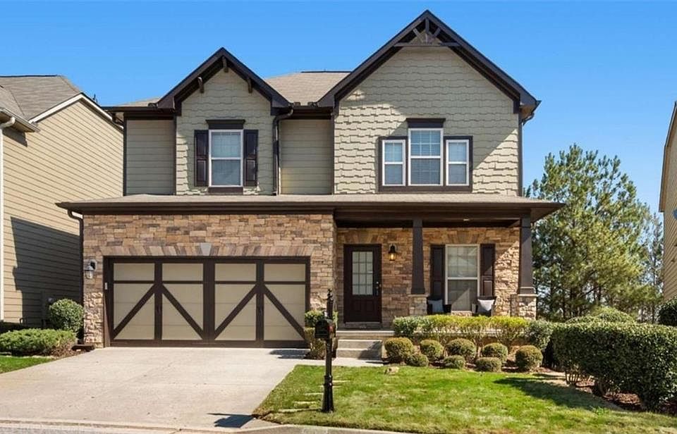 Step onto the inviting "rocking chair style" front porch of this beautifully upgraded two-story Craftsman, featuring timeless stone and frame accents and a generous unfinished basement for future growth. New flooring on the main level and it's open concept set a warm, welcoming tone throughout. Complemented by a separate dining room area—perfect for entertaining or family gatherings. The open-concept kitchen seamlessly connects to the family room and showcases granite countertops, a stylish tile backsplash, and stainless steel appliances, while the family room itself shines with a new accent wall and abundant natural light. A convenient powder room is located on the main level. Upstairs, the private owner's suite impresses with tray ceilings, a spacious en-suite bath with granite counters, tile flooring, a separate tile shower, deep soaking tub, and dual closets—including a walk-in with custom built-ins. Three additional roomy bedrooms and a well-appointed hall bath offer space for every need, plus a separate, private laundry room with tile flooring adds everyday convenience. The expansive unfinished basement provides exceptional storage or a blank canvas for your vision. Nestled in a safe, private gated community, this home offers the perfect blend of luxury, practicality, and peace of mind—ready to welcome its new owners! Please note that this home is a SHORT SALE & offers you the ability to go in with equity as it appraised well above asking giving you room to make the repairs needed. It will surely appraise for more upon completion. Home is being sold AS-IS. Seller will make NO REPAIRS and is not entertaining offers less than asking.