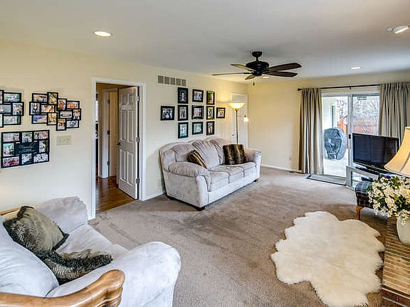 Updated classic family home offers everyday comforts plus big-ticket upgrades. New roof in 2015, as well as new exterior paint, gutters & downspouts. New carpet in all bedrooms. All new door hardware. Handsome kitchen has granite, hardwoods, great work triangle, soft-close pull-out drawers, and sunny eating area. Oven, dishwasher, and microwave are just a year old. Plantation shutters in study, formal dining room, and large living room with A-frame vaulted ceiling. Spacious family room anchored by authentic wood-burning fireplace. Beautiful 5-piece master bath with granite counters invites you to stretch out in the 6-foot tub, then warm up under heat lamp. Finished basement includes rec room, full bath with jetted tub and neatly customized craft room lined with cabinets and drawers. Walk into expansive fenced yard and pluck a juicy pear or an apple from fruit trees. Enjoy sunsets from covered patio. Walking distance to community pool and tennis courts and bike trails nearby.