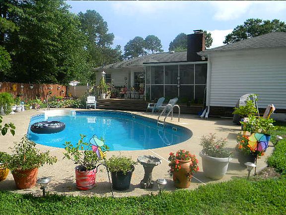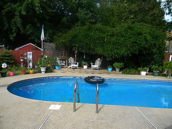 3 bedroom, 2 full bath L-shaped ranch in this quiet picturesque waterfront community. Relax and enjoy the privacy of landscaped backyard cabana area with an in-ground 17'x32'x8' pool. Open deck off large screened in back porch with master bedroom access. Fenced yard. Bright formal living room and dining room. Newly renovated eat-in kitchen with bay window, ceramic tile floor, beautiful matching back splash, granite counter tops, over-sized stove with double oven. Appliances convey. Lg utility/laundry room with upper and lower built-in cabinets. Lg family room (17x13) with custom built wood burning fireplace and hardwood floors. Master bdrm (17x17) with separate dressing area, lg walk-in closet and master bath. New carpeting in bedrooms and hallway. Crawl space. Many more wonderful amenities, too many to list. Must see this exceptionally well maintained home!