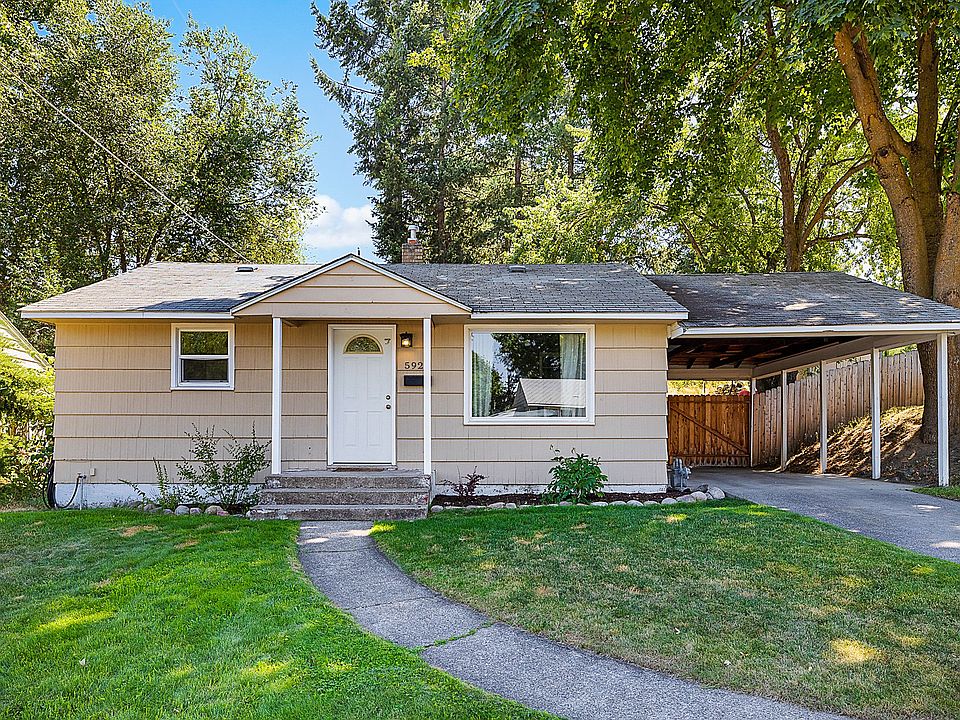 Cozy 2 bed, 1 bath Shadle rancher by Loma Vista Park . Centrally located to all amenities. View of Mt Spokane. Finish out the basement anyway you like. Lot is oversized with a teared retaining wall. Backyard has patio & is private, treed, fenced, newly grass seeded w/ power & sprinkler system. 12X10 shed. Carport. Location! Location! Location!