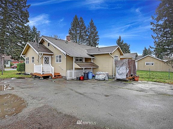 Unique 1925 Craftsman in Laurel Heights! Nearly 1,800 square foot, single level home is located close to schools, shopping, golf, hospitals and I-5 commuting and may be just right for you. Home is original to the era with two large main rooms; living room and sitting room with fireplaces, oversized Kitchen with eating space, spacious primary Bedroom with attached half bath and extended main Bathroom with Laundry. Extra bedroom could be flex/office as well. Back door mudroom, exits to large deck and fenced backyard with 3 car detached garage, shop area and extra off street parking. Accessible basement with hot water and furnace utility and loads of extra storage. Large home and large lot could have you "LIVING LARGE" in the heart of Everett!