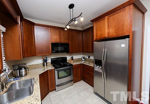 Beautifully updated home in NE Raleigh; Updated kitchen w/ granite counters, tile floor, SS appliances, soft close drawers. New laminate floors in downstairs. Both half bath & full guest bath updated w/ granite counters, tile floor, & updated fixtures. Master bedroom w/ en suite bath - dual vanity, soft close drawers, granite counters, tile floor, & new fixtures. Backyard boast large patio w/ built in fire pit, outside utility closet & large shed for storage. NO CITY TAXES!!