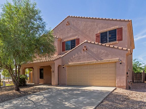 Welcome Home!!! This gorgeous 4 bedroom 2.5 bath home at the desirable Riata West in Buckeye is in a fantastic location. Close to restaurants, shopping, schools, parks & easy access to the I-10 Freeway. You'll love the layout of this two story home. Your kitchen offers new stainless steel appliances, a walk in pantry & plenty of cabinetry for storage & organization. Your spacious master suite offers a plethora of natural light, a walk in closet, dual vanity & a shower tub combo. This corner lot home also offers a new water heater, new interior paint, new carpet, new toilets, upgraded ceiling fans & lighting, an AC unit installed in 2023, a large loft area to utilize, an upstairs laundry room, as well as a front security door for your privacy, a two car garage & a low maintenance backyard with a covered patio & two tons of new landscaping rocks added. Your community offers green areas to enjoy, parks for the little ones & multiple basketball courts to make use of. This gem in the desert is a Great Buy & a Must See!!!