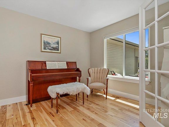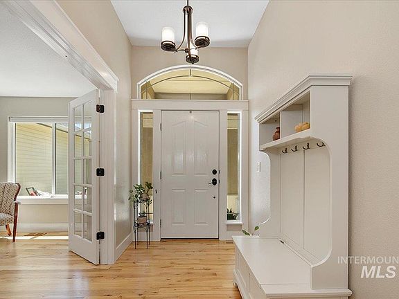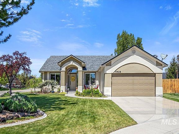 Don't miss this former Boise Parade of Homes model on a large corner lot in a quiet culdesac located in Columbia Village. Immaculately maintained and in pristine condition inside and out. Beautiful hardwood floors throughout home, tile flooring in bathrooms and utility room. Master suite highlighted by gorgeous custom tile walk-in shower, walk-in closet, and granite countertop with dual sinks. Granite countertops in kitchen with travertine backsplash. Guest bath also has granite countertops. Home has upgraded 6" baseboards throughout, a comfortable living room with cozy gas fireplace. The 20X21 garage has an extended 11X12 area for extra storage or small workshop. Oversized back patio partially covered with pergola accompanied by raised garden beds, private hot tub, and 8X8 storage shed. Minutes from Micron, downtown Boise, I-84 and easy access to the foothills and Lucky Peak. Columbia Village boasts parks, community pools, tennis courts, rec center, and plenty of walking and hiking paths.