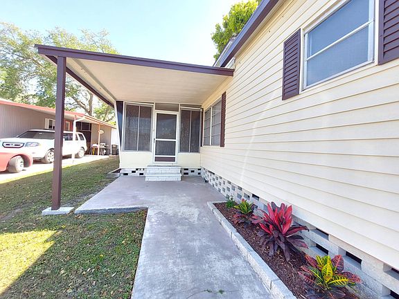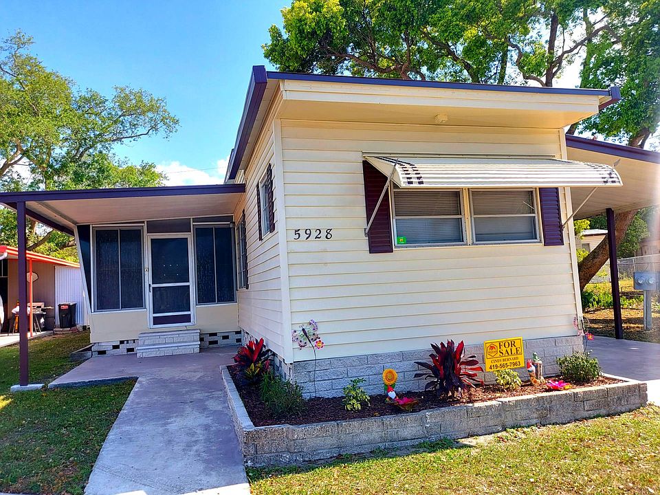 Dont miss this one in Orange Heights Mobile Home Park New Port Richey. LOW LOW LOT RENT OF $475 PER MONTH INCLUDES WATER, SEWER, TRASH and LAWN! 55 PLUS One PET 25LBS OR LESS ACCEPTED !! Must see very spacious clean and updated. 2 Bedroom 1 1/2 bath split floor plan!! FURNISHED!! 12 x 12 bonus room off of bedroom is a great addition that can be used for office, craft or readingroom. Slider from this room leads out to enclosed lanai with screens and vinyl windows for year round use. Very unique layout. Many updates to home including attractive light fixtures, ceiling fans, new stainless steel kitchen sink, laminate floorin, indoor outdoor carpet in lanai. All walls have been painted and have knockdown finish. Ceilings painted. Enjoy 60 free channel's no cable needed with HDTV Antenna!!! High ceiling in main living area. This home is loaded with storage throughout...closets, cupboards, and storage shed with washer and dryer. Solid floors and sealed roof. VERY QUIET WELL MAINTAINED PARK IN GREAT LOCATION Located off of Trouble Creek Road, there is easy access to US Highway 19 for dining and shopping and medical. The area is filled with golf courses, parks, beaches, sporting events and concert venues. Community members enjoy taking advantage of Florida activities; fishing, biking, hiking and of course, the Tarpon Springs Sponge Docks, Historic Downtown New Port Richey, Simms Park and Beautiful Frank Howard beach are all minutes away. If you are looking seasonal or fulltime living at affordable price this could be it. CALL AGENT CINDY for more details and showing!!