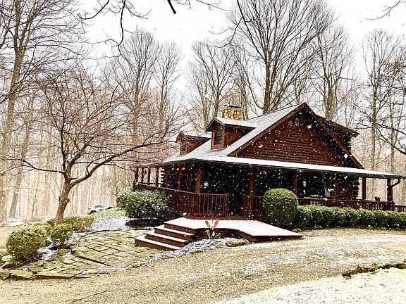 If luxury & tranquility are what you've been searching for,LOOK NO FURTHER!This pristine log cabin is situated on 6.5 beautiful rolling wooded acres!3 possible 4 spacious BDRMS w/an open concept floor plan is sure to bring the WOW factor at every glance!Top of the line craftsmanship throughout including NEW roof in 2016,NEW mechanicals in 2014 & the Cadillac of all HVAC systems installed 2014 w/a 10 YR transferable warranty.Kitchen boasts exquisite granite countertops,pendant lighting & SS appliances w/eat in space that flows elegantly to the dining & great room.Wood burning fireplace sets the tone for warmth & relaxation as natural sunlight beams in all around you!Full basement offers additional flex room that could serve as office space or 4th BDRM.Home Warranty is in place!