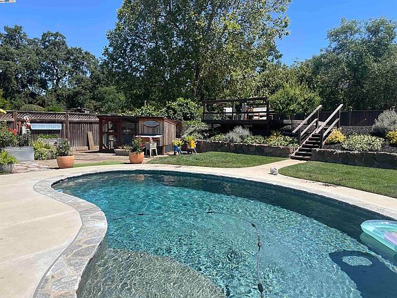 Welcome to your private resort like retreat boasting nearly 15,000 ft.² of meticulously maintained landscape nestled on a quiet street in the foothills of Mount Diablo in Sunny Clayton California. This property boasts 10 rooms with 4 bedrooms 2.5 bathrooms, all recently remodeled, including a game room currently set up as a home Gym. When you step into the back yard, you'll be greeted by your own private retreat, with a recently remodeled pebble tech swimming pool powered by state of the art equipment and lighting system; heated year round by a fully owned/paid solar heating system. The property backs up to permanent open space with a trail and creek right behind it across from the golf course. When lounging in the back yard you will be mesmerized by the majestic panoramic views of Mount Diablo and beautiful Sunsets every evening. For an active lifestyle, you also have a huge driveway plus RV parking, tons of storage space with custom built sheds, and even a gorgeous custom built chicken coup (currently inactive), and a Well on the property as well; making it a self sustained resort if need be!! An absolute must see, schedule your showing today!!
