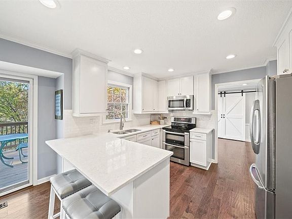 Here it is - an ideal setting for this perfectly functional 2-story with so many special updates! This deep homesite remains partially wooded to provide you with both gorgeous views and refreshing privacy! And is conveniently located directly across the street from Shawnee Mission's Broken Arrow elementary school. You'll benefit from super easy access to I-435 and Shawnee Mission Parkway to take you all places in the metro. You'll love the beautifully remodeled kitchen with Silestone quartz countertops; the new luxury vinyl plank flooring on the main level and finished basement; the second level's hardwood flooring; the knockdown ceilings on the main and bedroom levels; and the large windows that fill your rooms with sunshine! You'll appreciate brand new exterior paint; instant hot water via 3-year old tankless heater; 1-year old energy-saving HVAC; the fenced portion of your large backyard; the warm atmosphere created by the easy-on gas-log fireplace; primary suite's refreshed bathroom with easy care Onyx double-vanity and shower; your serene views of trees and nature from the spacious deck and its steps to backyard; and your finished, walkout lower level with family room, a 3rd full bath and bonus room. This bonus room could be a 4th non-conforming bedroom or an office or craft room - what are you wishing for? The sellers creatively converted the main floor laundry room to a dynamite walk-in pantry and for their convenience, moved the laundry into a bedroom. Hook-ups remain concealed behind the pantry's removable shelving, so you'll have the option to cover the bedroom hook-ups and return the laundry to the main floor. You'll be just minutes from multiple grocery stores, restaurants and retail shops, as well as the renowned Shawnee Mission Park and lake, Shawnee's revitalized downtown and outdoor aquatic center, a county library, Lenexa's City Center shopping and dining complex, plus so much more. Do not miss your opportunity to settle into this comfy, warm home!
