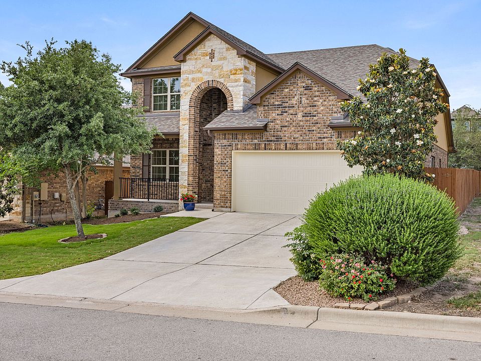 Welcome to this spacious 2-story, 4 bed, 2.5 bath home in Sweetwater! Move in ready with fresh carpet and paint inside! This home has fantastic curb appeal with a charming stone-and-brick exterior and covered front porch. No neighbor on one side for added privacy, and the neighborhood walking trail starts just steps from your front door. Inside, the living room features soaring ceilings, a cozy gas fireplace, and large windows that bring in natural light. The kitchen offers a large center island with abundant cabinet space, and appliances (including refrigerator), while the open dining area is perfect for gathering with friends and family. The primary suite is a true retreat with a spacious bedroom, dual vanities, a soaking tub, separate shower, and large walk-in closet. You'll also find a dedicated office and a half-bath on the main floor. Upstairs, a large game room connects to three secondary bedrooms and a full bath. Out back, enjoy a covered patio and mature oak trees that provide extra privacy. Sweetwater residents enjoy two resort-style amenity centers with pools, fitness center, sport courts, playgrounds, miles of scenic trails and Lake Travis schools. Just minutes to the Hill Country Galleria, and local restaurants. Owner will pay for lawn care and HOA. Tenant pays all utilities. 12-24 months (negotiable)