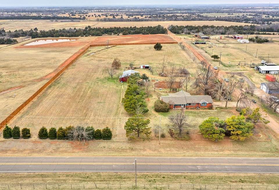 Lovely rural setting acreage close to Edmond on 4.43 acres (MOL) Property has 3 bedrooms, 1.5 baths, 2 living, an enclosed activity room and open deck. Storm Shelter is underground with access from the second living area. Property has a barn with an additional garage/workshop on the backside of the barn. There are two other structures on the property. The property has a private well and a septic tank. Property being sold "AS-IS". Buyer(s) can have inspections.