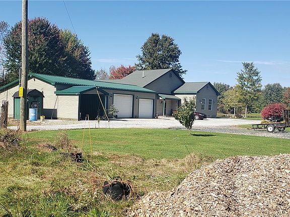This is the one you've been waiting for ! Own your own " Hunters Paradise " 81.66 Acres - 45 acres wooded - 25 acres of cut-off - surrounded by neighboring corn fields. Property features 3 beautifully landscaped ponds, stocked & with electric for aeration. 1900+ sq. ft. 2 bedroom ranch home with heated concrete slab plus 3 car 30 x 44' heated garage/workshop with overhead hoist. additional outbuildings include newer metal sided 10 x 40' wood storage barn plus a former kennel building 10 x 16' with concrete and electric. A nice setback from the main road makes this the perfect place to call home !