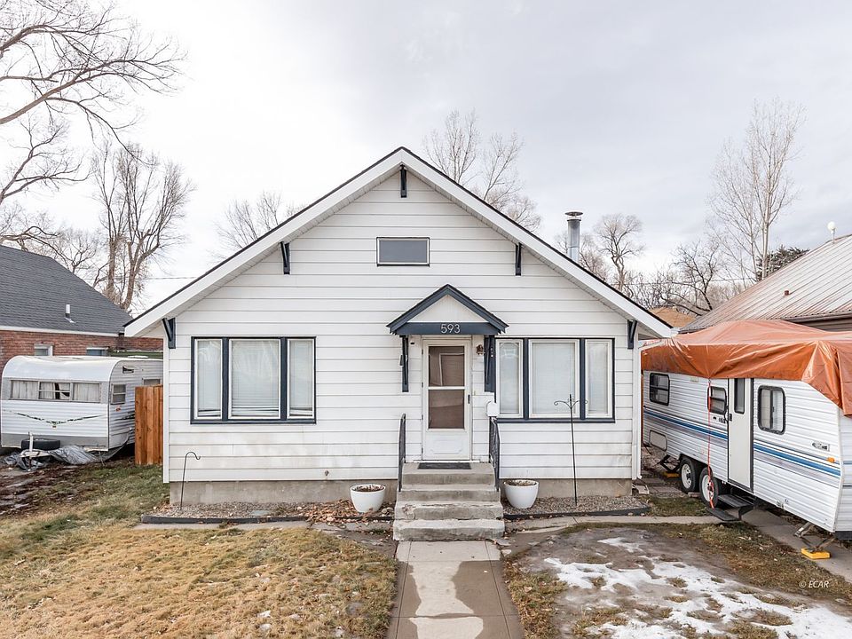 Welcome to 593 11th St., a charming home conveniently located near Elko High School. This 1318 sq ft residence offers a comfortable and inviting atmosphere with 2 bedrooms and 1 bathroom, plus the potential for a 3rd bedroom in the basement. The heart of this home lies in its open concept kitchen and living area, providing an ideal space for both everyday living and entertaining. The warmth of the wood stove enhances the cozy ambiance, creating a perfect setting for family gatherings during the colder months. Step outside and discover the additional features that make this property special. A small detached garage offers convenient parking or storage space, while the fenced yard provides a secure and private oasis. The sprinkler system simplifies lawn maintenance and the RV parking adds versatility for those with outdoor adventure in mind.