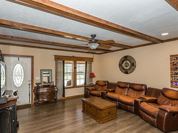 The best of both worlds: just minutes from shopping/grocery/restaurants/interstate access and privately secluded on 5 acres. This manufactured home was installed on poured concrete slab and concrete block permanent foundation in 2016 boasts 4 bedrooms and 3 full bathrooms. Gated, fenced perimeter around front of property and short distance behind house perfect for security of family and pets leaving another 4 acres un-fenced and wooded. Open floor plan with kitchen flowing into front living room and family room complete with fireplace. Master bedroom has large walk-in closet and awesome full bathroom with double bowl vanity. The 3 guest rooms and additional 2 full bathrooms are on the other side of house for privacy to homeowner. Separate room for washer and dryer too! Huge covered front porch to admire the beautiful surroundings while watching family enjoy playset in front of home that conveys. Call today for your private showing!