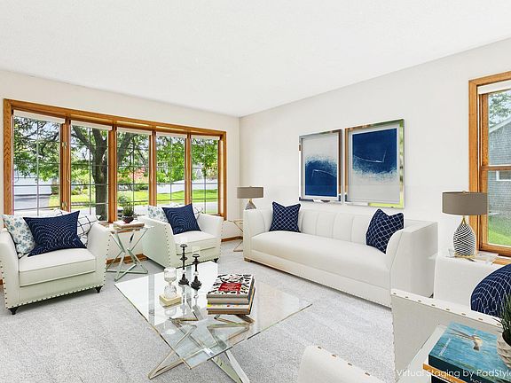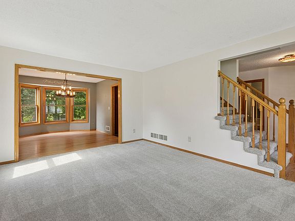 Welcome to this beautifully maintained 5-bedroom, 4-bath home in the heart of Eagan. Set on a scenic .41-acre lot that backs to a tranquil pond, this property blends modern updates with inviting living spaces. The main level features hardwood and natural stone floors, a remodeled powder room, and a light-filled living room with brand-new carpet (June 2025). The remodeled kitchen combines style and function with cherry cabinetry, granite countertops, slate tile flooring, stainless steel appliances, soft close drawers, a wine fridge, and generous pantry storage. The kitchen flows seamlessly into the cozy family room with vaulted ceilings and a gas fireplace, creating the perfect gathering space. Upstairs, the private primary suite offers a walk-in closet, and a spa-like bath with a jetted tub, and a separate shower. Two additional bedrooms and a full bath complete the level. The finished lookout basement adds two more bedrooms, a spacious rec room, and a dedicated home office, ideal for work or study. Outdoor living shines with a huge deck, paver patio, and a park-like yard complete with in-ground sprinklers, a storage shed, and Invisible fencing. Numerous updates provide peace of mind, including many new Anderson windows (2019), freshly painted steel siding (2021), New fridge (2024) and more. 196 school district. Within walking distance to nearby Captain Dodd. and Bridle Ridge Parks. Seller offering $2500 towards buyer closing costs.