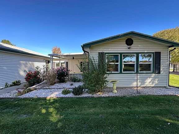 Well maintained home in 55+ community. The largest Lot in the community. The outdoor space backs up to the community park with walking trails. The home has an expansive a 35x24 detached garage w/workshop includes workbench & builtins. New roof and windows on house & garage in 2007. New siding in 2001. Covered patio and nice landscaped yard. All appliances include range, disposal, refrigerator, dishwasher, washer/dryer. Master suite includes 4 piece bath with garden tub & shower. Large family room with large windows that face the park. Common facility for rv parking. Close to shopping & restaurants. HOA covers maintenance of common area & irrigation water. All information subject to error/change.