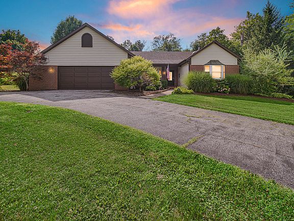 Discover this beautifully maintained custom ranch home in Hunters Ridge, nestled on nearly one acre of land. DUNELAND school district! This residence features beautiful hardwood floors, a new central air system, wood-clad Andersen windows, a cozy wood-burning fireplace, solid wood doors, a split bedroom layout, and fresh paint completed this month. As you enter the foyer, you'll find a versatile space to the left that can serve as an office, formal dining room, or playroom, depending on your needs. The bow window floods the room with natural light, highlighting the hardwood floors. To the right, you'll find two additional bedrooms and a fully updated bathroom. The living room, with wood beams and a triple window, offers views of the expansive deck and large backyard. It seamlessly connects to the dining room, which features extra cabinetry for storage and a granite countertop ideal for a coffee bar. French doors lead from the dining area to the inviting Four Seasons Room, equipped with new windows installed in 2020. The kitchen boasts solid wood cabinetry, granite countertops, a tiled backsplash, and stainless steel appliances, with a convenient cutout window that overlooks the dining area. The primary bedroom features a whirlpool tub, shower, and a walk-in closet, and is spacious enough to include a sitting area. The laundry room, conveniently located just around the corner from the kitchen, offers ample cabinets, a pantry, and a utility sink. Downstairs, you'll find an additional room with built in bookshelves and a cedar closet, recreation room, and a brand-new three quarters bathroom! Additional features include a circular driveway with an overflow paver brick parking area, a deck built in 2017, and an invisible fence for added convenience.