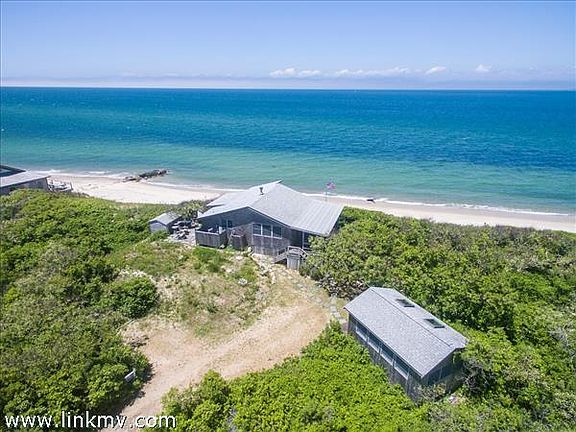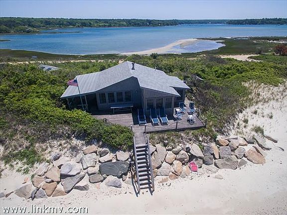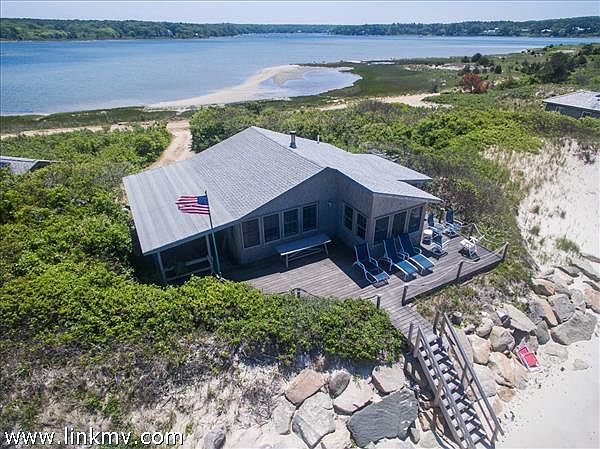 With Lake Tashmoo in your front yard and all of Vineyard Sound at your back door, this is the perfect setting to recreate the summers of our childhoods - digging clams to cook & eat on the beach - swimming 'til our lips were blue while Dad fished - reading under beach towel "tents" until we were allowed back in the water. This enchanting beach house has a front-to-back living/dining room, offering views of both the Sound and Lake Tashmoo. The master bedroom is generous in size and its vaulted ceiling and views out to the Sound make it light and airy. The guest bedroom is just delightful with windows on three sides offering incredible views of the Sound and the lulling effect of the waves lapping against the shoreline is irresistible. The 2003 renovations of the home kept its vintage appeal while including all new Anderson replacement windows, updated kitchen, new exterior shingles and interior beadboard. At the same time, the owners undertook a complete rebuild of the separate studio/bunkhouse which has insulation, electricity and cable, oak flooring, all new drywall and skylights. There are two built-in couches/day beds, creating plenty of sleeping space for 6 - and the generous number of windows look out to big views of Lake Tashmoo. Come - be a kid again.