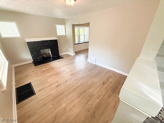 Step into this fully renovated 2-bedroom, 1-bath home featuring fresh paint throughout, updated flooring, and tasteful modern touches. The inviting front porch sets the stage for relaxed mornings or evening gatherings, leading you into a bright living room accented by a decorative fireplace and plenty of natural light.