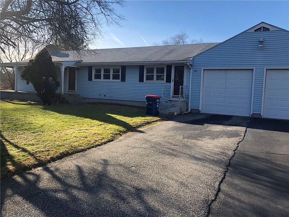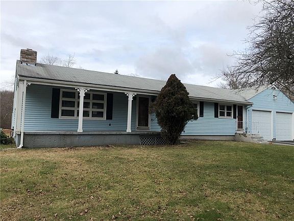Large 3 bed ranch with a 2-car oversized garage (both in door height and depth) on a 1.4 acre lot. 3-car wide driveway. Side door opens to front to back family room with soaring catherdral beamed ceiling. Basement has a fireplace, french drains and a professionally installed sump pump with battery back-up (2018), so it could be refinished as a walk-out as originally built. Home features fireplaced living room, hardwoods, good closet space, 3 heating zones and central air. Back field is cleared and level. New septic to be installed prior to closing. Good house in need of tlc. Subject to seller finding suitable housing (which he has found).