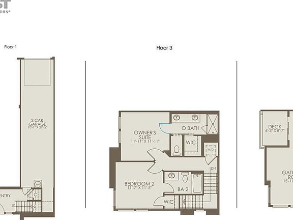Experience efficiency, convenience, and privacy in Plan 2’s sun-filled corner townhome. Along with a tandem garage on the ground level, there’s a convenient powder room and coat closet off the front entry. Walk upstairs into the open living area with a gathering room, a modern kitchen with an island bar, and a café that leads onto your private deck, with water views. Upstairs is the master suite and second bedroom with a private bathroom. The Bay37 community will boast a variety of amenities for residents, including a public park, with picnic areas, a playground, a dock, walking path along the estuary and more!