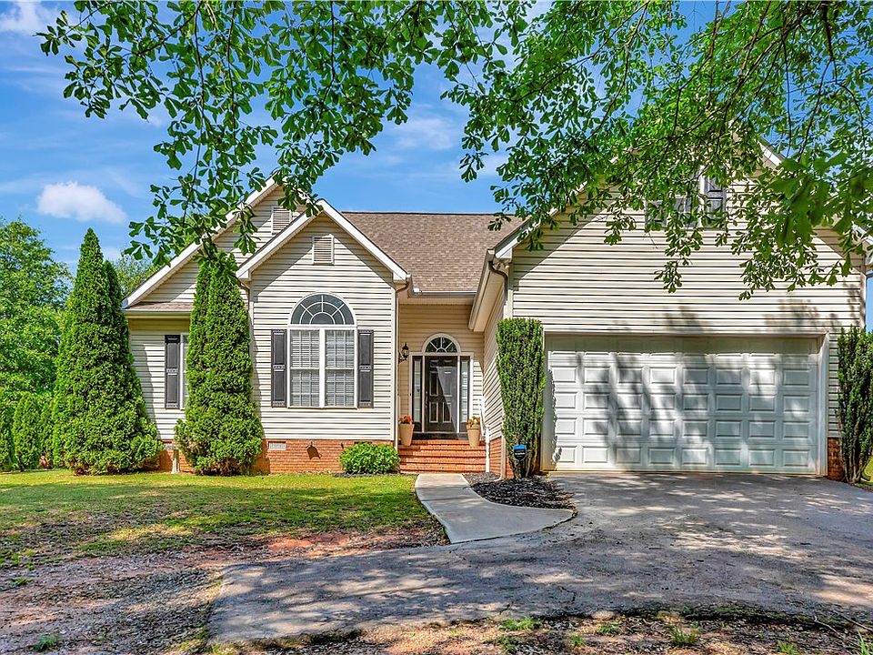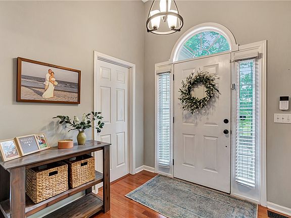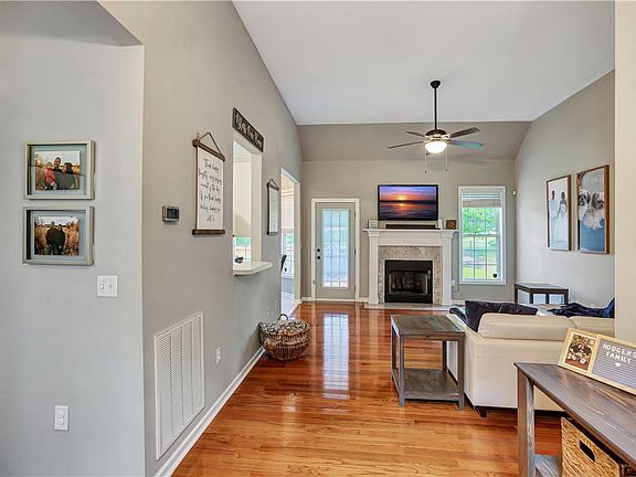 This charming home boasts a fantastic split floor plan all on one level, making it perfect for families or anyone seeking convenient living. As you step inside, you'll immediately be greeted by the stunning hardwood floors that flow throughout the space. The living room is spacious and inviting, with vaulted ceilings and a cozy gas log fireplace, making it the perfect place to relax and unwind. The kitchen is complete with an abundance of cabinetry, a pantry, and a breakfast area for quick meals on the go. The adjacent dining area provides ample space for family meals and entertaining.