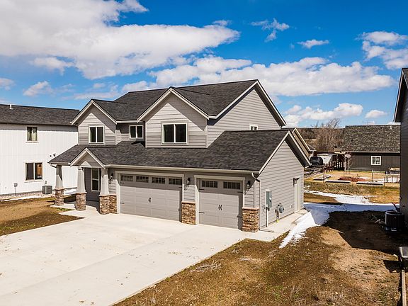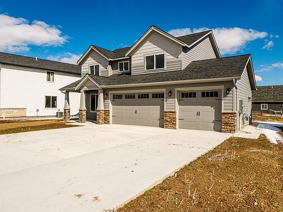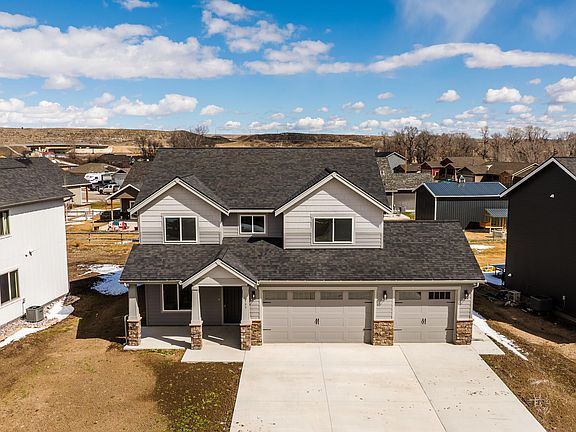 New Construction by Cascade Dwellings! A gorgeous 2-story home with 4 bedrooms, 2.5 baths and a 3-car garage. Upgrades include a gas fireplace, soaker tub in master bath, and a large 12 x 12 covered concrete patio in the back yard. Cascade Dwellings is an experienced home builder with high quality designs and amenities: Shaker style cabinets with soft-close drawers and doors, quartz countertops with subway tile back splash, stainless steel appliances, 8ft tall entry and patio doors, craftsman style trim throughout interior of home, ample additional recessed lighting, 95% efficiency furnace with central air conditioning, and finished garages with carriage house garage doors. Each home is thoroughly inspected by an independent third party and any issues are addressed immediately, making the home buying process as smooth as possible for the new homeowners. Enjoy the views of Tongue River from the second story bedrooms and listen to the sounds of the creek from your covered front patio - WOW! Come see it for yourself!