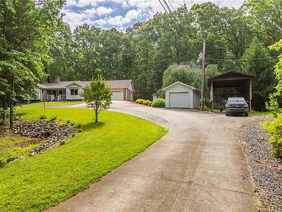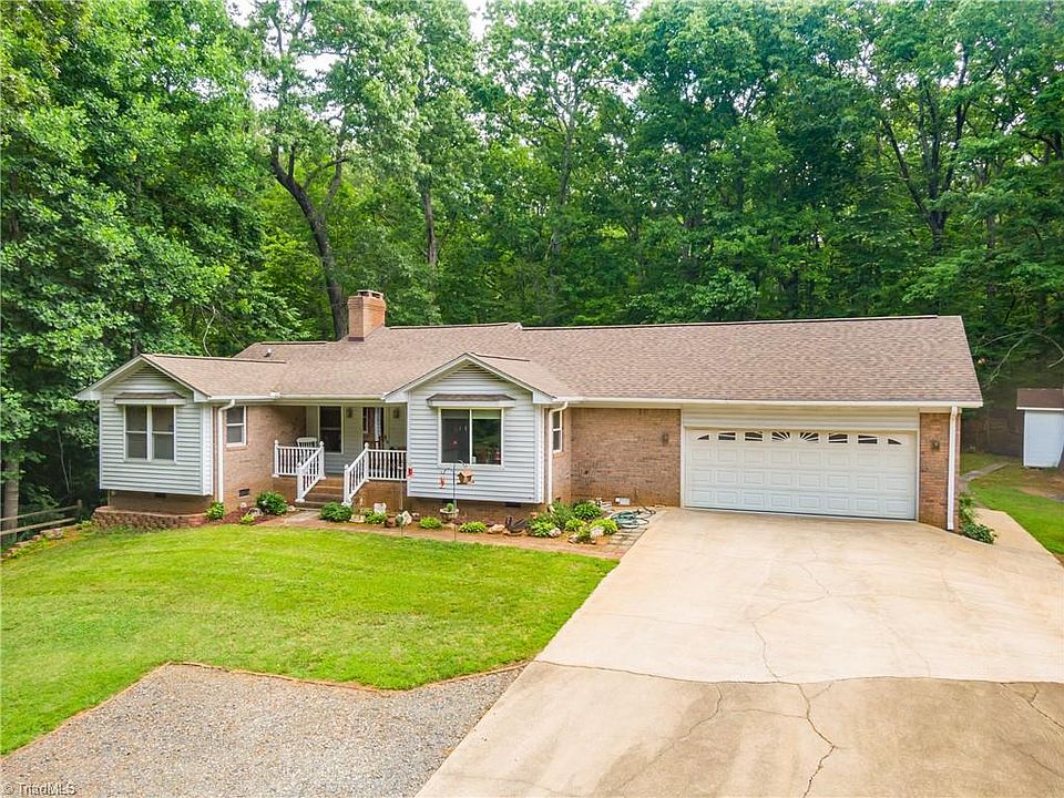 Welcome to this custom-built ranch sitting on over 2 serene acres, offering the perfect blend of comfort and tranquility. Featuring three spacious bedrooms and two full bathrooms, this home also boasts a formal dining room and a cozy breakfast area. Step outside onto the impressive TREX deck, where you'll enjoy ultimate privacy and the soothing sounds of nature. Additional highlights include a two-car attached garage, a detached storage garage, and a generously sized boat/RV/car port. Refrigerator and Washer/Dryer convey! With High Rock Lake just steps away, you have deeded access to the water! Home Warranty Included!