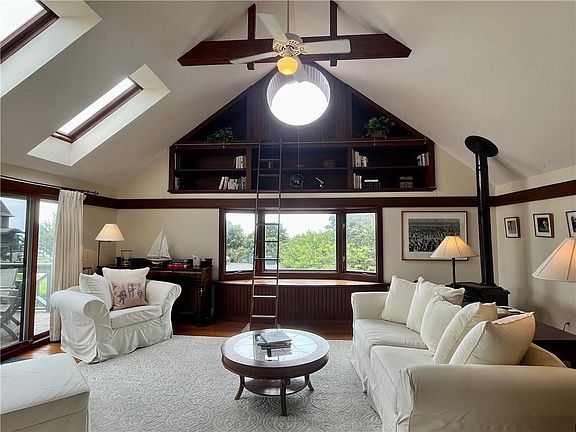 Available October 15, 2024 - May 15, 2025. Bass Rocks Upper Deck is located in a large historic carriage house on the coveted Tuckerman Ave in Easton's Point. This three-level apartment is both private and unique. The living room is oversized with plenty of seating and a wood burning fireplace. Just off the living room is a deck which is set up for outdoor grilling and dining. There are two bedrooms, in total, including a primary ensuite (with King bed). The other bedroom has a Queen bed and a shared full bathroom with shower. As you start up the spiral stairs, you come to a loft with two twin beds and a small couch. If you continue up the spiral staircase, you will find yourself on the observation deck with breathtaking views of the Atlantic Ocean and Sachuest point. The apartment features original hardwood floors, a beautiful kitchen with cherry cabinets and granite counter tops. The apartment has a laundry room, cable, WiFi and off-street parking. Utilities are included in the rental rate! Utilities included with a monthly cap.