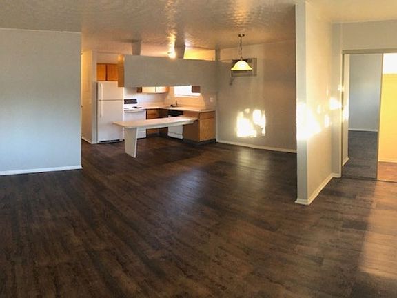 Small foyer features large closet and opens up into an open floor plan-- living room, dining room, and kitchen combo. The hallway leads to the bathroom and large bedroom with a huge closet!