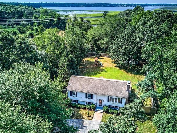 Enjoy the tranquil setting of this conveniently located property. The home is elegantly set back off the main road with mature trees lining the drive and entry. Entering the house, the first floor features a spacious eat-in white kitchen with newer stainless appliances, granite countertop and opens to the living room with a large bay window overlooking the front yard. A gorgeous water view of 100 Acre Cove and the spacious fenced in yard with shed and playgym are reached from the sliding glass doors in the kitchen that open to the new deck. Three bedrooms and a full bath complete the first floor. Natural light floods the lower level through deep windows in the flexible finished living area. This large space can be used as office space, playroom or common living room. A bulkhead allows for exterior access. An unfinished area includes the laundry, utilities and plenty of storage. Sit on the deck overlooking the natural landscape and serenity of the water from this house that is just minutes from Four Town Farm and closeby to the convenience of Seekonk shopping and all that Providence has to offer.